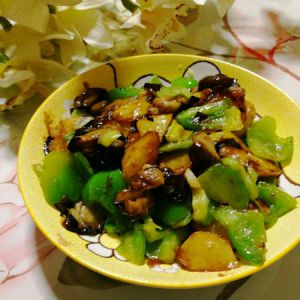 放入煸好的土豆、茄子和青椒。