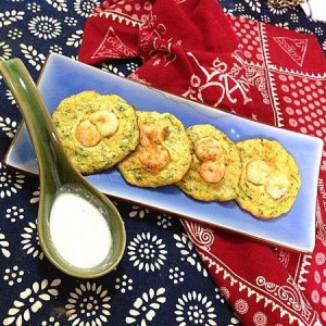 点火锅入底油, 勺子舀面糊入锅整理形状稍微压扁,稍微煎至饼成型,取虾仁按在饼上面,待一面金黄微焦的时候翻面,煎另一面。