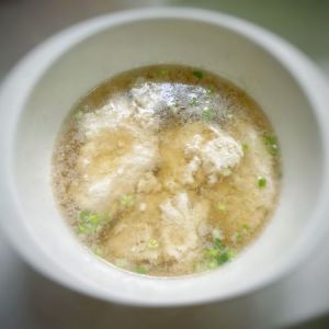 如图,小火煮熟即可。碗里放葱花,把汤直接倒碗中就做好了