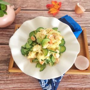 简单快手的黄瓜虾仁炒鸡蛋菜谱做法