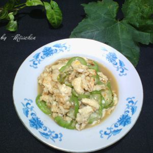 丝瓜去皮洗净切片,鸭蛋磕入碗中加点盐打散,蒜切碎