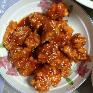 热锅放一点油,倒入150g番茄酱,加普通汤匙一勺白糖,注意不可太多。放入50g水。快速搅拌至粘稠放入炸好的排骨搅拌均匀即可出锅,最后装盘洒少许芝麻增加美观度。OK美食完成