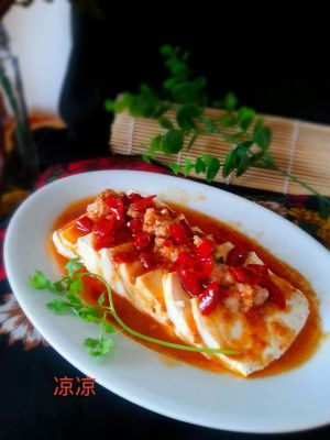 哎呀,浇上剁椒芡的豆腐更显水嫩啦,真诱人胃口啊!