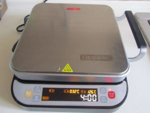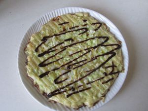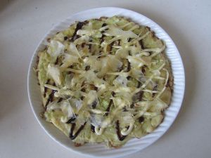几分钟后菜饼就煎好了, 将煎好的菜饼放入盘中;