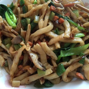 少许油,烧热放葱(看个人喜不喜欢吃葱,放点葱会更香),倒入蘑菇翻炒几下在放其他蔬菜炒几下倒入面条,炒匀后加酱油,五香粉等佐料炒匀就可以出锅了