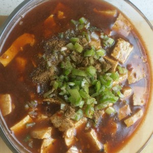 锅中加水放盐,将豆腐放入锅中,煮沸,去生豆腐味