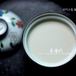 取一个小碗,倒入姜汁 快速将牛奶倒入姜汁中