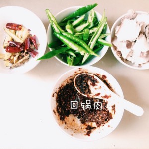 姜丝,煮至半熟切片猪肉还有干辣椒和花椒一起下锅。