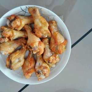鸡翅加辣椒粉,糖,盐,五香粉,加少量水,腌好。时间允许,可以腌一夜