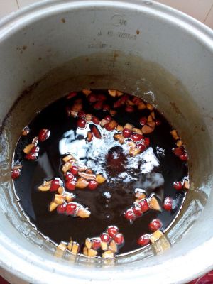 把花滤出,加红糖和红枣,煮开后要隔几分钟搅一次,要煮到像蜂蜜的浓稠度。这个时间要久一点。