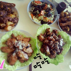 装盘时在盘上装几片白菜叶或者生菜更好看,最后在面上撒点芝麻味道更好哟