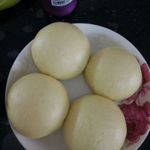 先发面,两种面混合,酵母也放入,大概一匙勺的量,小苏打少量,大概酵母量的三分之一,一边放水一遍和面,水温35左右,大概就是手放水里觉得有些热就可以,面要比包饺子稀,比较好发酵。把和好的面盖好放到温暖地方发酵,大概两个小时发好是这样。