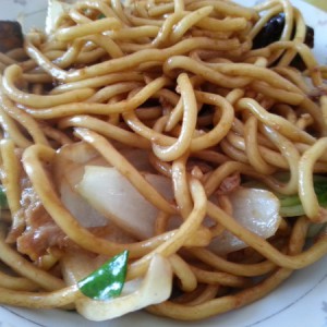 蔬菜炒到五分熟就能倒入面,加盐、生抽等佐料,炒好上盘咯。
