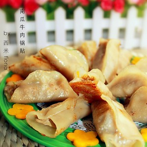 南瓜擦丝,加少量盐杀下水,不要挤太干。用刀切几段。不要剁碎。葱姜剁碎,加小半碗水泡十分钟。牛肉加1 汤匙料酒腌十分钟。