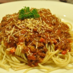 肉酱制作方法:锅中放油,油热后,倒入猪肉馅,煮至肉腥味去掉,肉中水份炒干,加入意大利面酱、洋葱碎块煮二分钟即可出锅。
