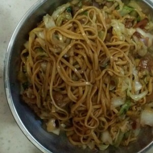 新鲜面条下锅,煮至8成熟,凉水浸泡,面条筋道。