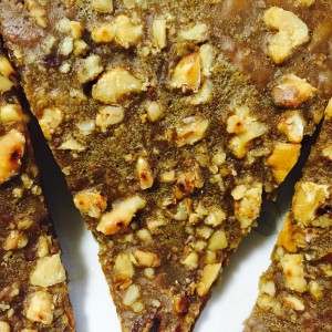 均匀的撒在上面,不建议搅拌在面糊里,因为那样核桃就不脆了,