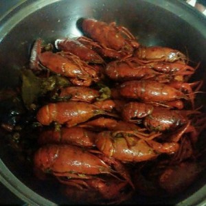汤汁收干了就好了。摆起来,为了凹造型也是醉了。灯光不好颜色没出来。味道棒棒哒!也不枉我洗虾子被夹的哇哇叫……吃货们,搞起!