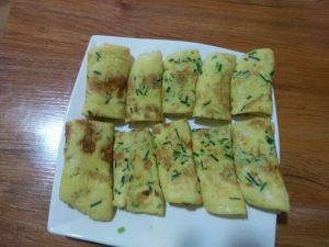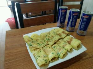 接着就可以开始卷鸡蛋了,卷成这样就差不多了