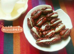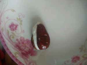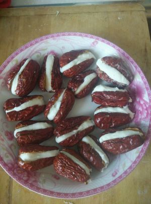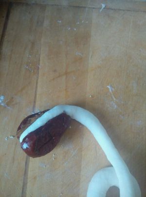 做好的大枣糯米,用手捏一下大枣两边,使其贴合。