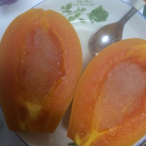 木瓜洗净外皮,对半切!除去中心米米!