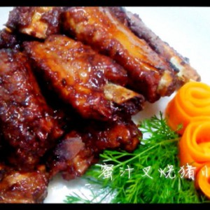 把小排放在铺有锡纸的烤盘上,烤箱预热180度,上下管放中层,25分钟,烤10分钟的时候拿出翻面,最后5分钟涂上蜂蜜。等叮声就ok了。