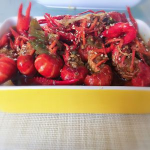 把先爆好的小龙虾下锅一起爆炒 加入一听啤酒 大火烧开转小火焖约20分钟
