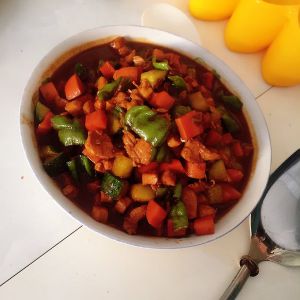 切丁、葱花下锅放入鸡丁加入料酒、老抽、白糖、豆瓣酱、、5分钟后放入胡萝卜丁、炒2分钟加两勺水、15分钟后加入青椒块、炒几分钟倒入黄瓜丁!5分中左右出锅装盘