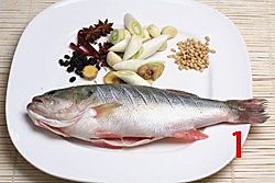 鲈鱼洗净、去鳞去腮、取出内脏、葱切段、姜切片、蒜洗净。