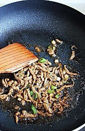 用热油滑熟,加入葱姜,加入少量生抽调味上色
