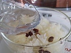 把雪耳、红枣和元肉放入微波炉煮锅里,加入1200ml清水,盖上盖子,高火45分钟。