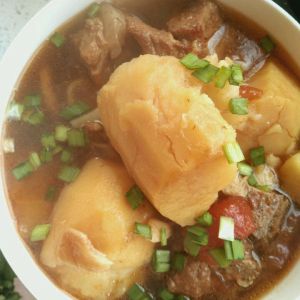 将土豆和胡萝卜削皮,切滚刀块,土豆比胡萝卜切大一点(防止煮烂)切好的胡萝卜和土豆泡水备用