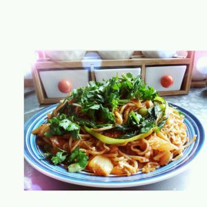 锅里放入少量食用油,油热煸炒葱花后依次放入西红柿、青菜、泡菜(炒的时间不要太长),最后放入面条,因为泡菜本身有味道,所以可以根据个人口味再放入少量的食盐和花椒粉就可以出锅啦~味道很不错哦~酸酸的很开胃,大家也来试试吧~(❁´◡`❁)*✲゚*