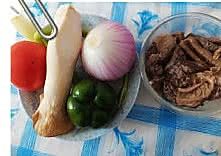 杏鲍菇、西红柿、洋葱分别洗净,切成滚刀块;青椒去籽和蒂,洗净,切成块;芹菜去叶,切段。