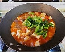 放入杏鲍菇、西红柿继续煮10分钟,然后放入青椒和青菜,调入盐,再烧煮片刻即可。
