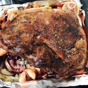 将腌制好的羊排上的洋葱,大蒜去掉,用锡箔纸包好,烤箱200度烤60分钟(时间和温度要根据烤箱的品牌和羊排的大小而定)。