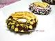 把饼干蘸取一点融化的巧克力,再用椰丝、糖珠、开心果碎装饰一下,然后把饼干放置在一边,直到巧克力凝结。