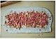 再把葱花火腿均匀的铺在上面。