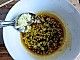 把调好的蒜油和炒好的辣油浇在凉粉上,撒上香菜,再淋点辣椒油即好。