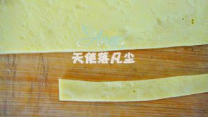 把蛋饼切成长条卷成蛋饼玫瑰。