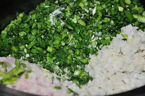 将以上除饺子皮外,其它食材切洗好,装盆加入适量色拉油。