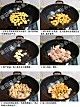 锅内烧热2大匙油,放入板栗炒至表面变金黄色,盛出备用。