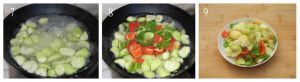 青红椒倒进去,稍微烫一下就行,时间不要煮久了。