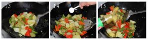 把地三鲜倒进去翻炒。