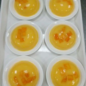 把水煮开,放布丁粉,撹匀,可以倒进小婉里了