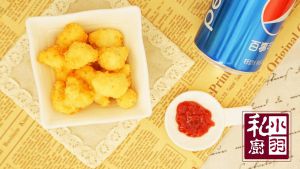 ▲一份香喷喷的鸡米花就做好啦。你做好了之后记得拍照给我,在微博上@小羽私厨的桐小羽,我会选出棒棒的作品赠送小礼物呀。
