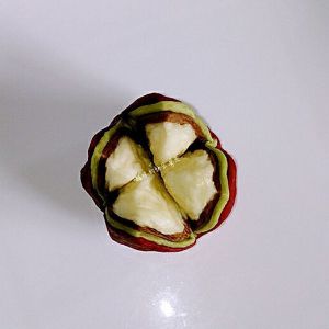 充分的排气后,按照40%、30%、20%、10%的比例将面团分成四份,分别加入红曲粉、抹茶粉、可可粉揉均匀。
