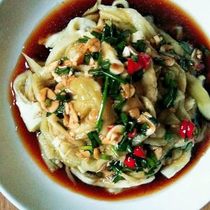 调蒜汁,大蒜切碎放入生抽,醋,香油,白糖拌匀