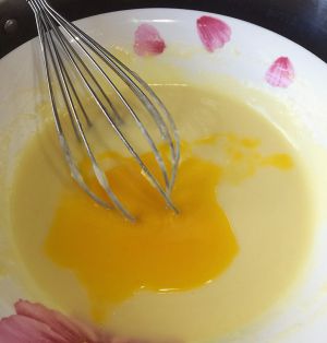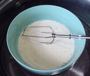 奶油奶酪+砂糖+牛奶隔热水打至顺滑无颗粒