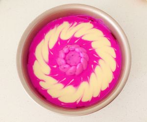 将冻好的花型慕斯小蛋糕放在蛋糕模中间,倒入所有的原味慕斯液,冰箱冷冻半小时以上